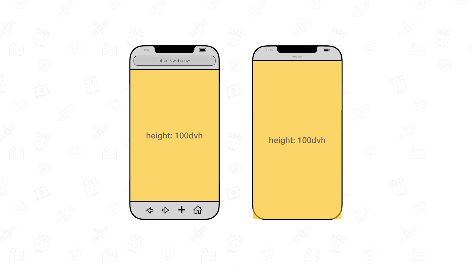 vw = 1% of the width of the viewport size.vh = 1% of the height of the viewport size.Give an element a width of 100vw and a height of 100vh, and it will cover the viewport entirely.
